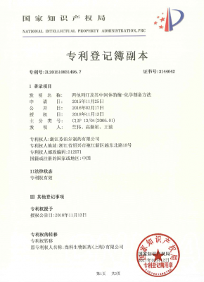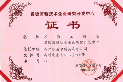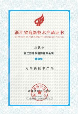 浙江省高新技術(shù)產(chǎn)品證書-替硝唑